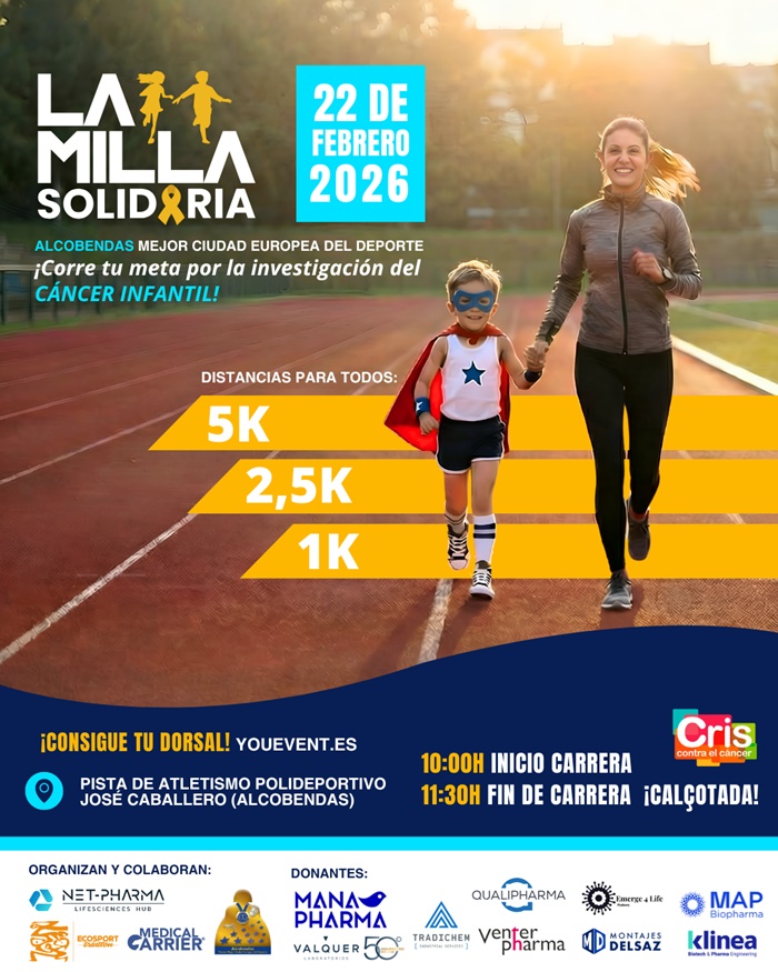 El ecosistema tecnológico Net-Pharma Hub ha organizado su primera Milla Solidaria con el objetivo de recaudar fondos íntegros para la investigación oncológica pediátrica. La cita, que se celebrará en Alcobendas, busca movilizar a la sociedad civil y empresarial para financiar nuevas terapias a través de la Fundación CRIS Contra el Cáncer.