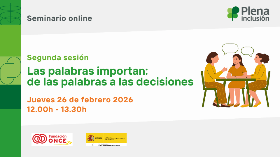 La organización Plena inclusión España celebrará el próximo jueves 26 de febrero de 2026 el seminario online "Las palabras importan (Parte 2): de las palabras a las decisiones". El encuentro técnico profundizará en cómo el uso del lenguaje condiciona la capacidad de elección y el ejercicio de derechos del colectivo.